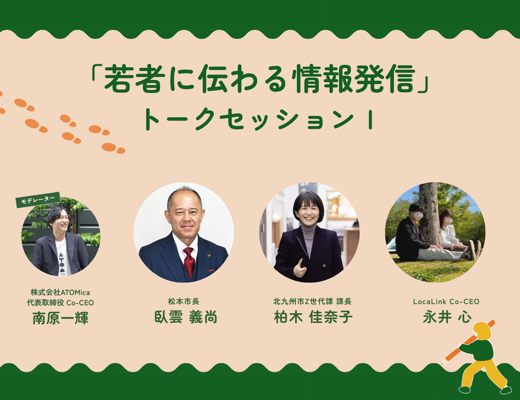 登壇者:松本市長 臥雲義尚氏、北九州市Z世代課 課長 柏木佳奈子氏、合同会社LocaLink Co-CEO 永井心氏