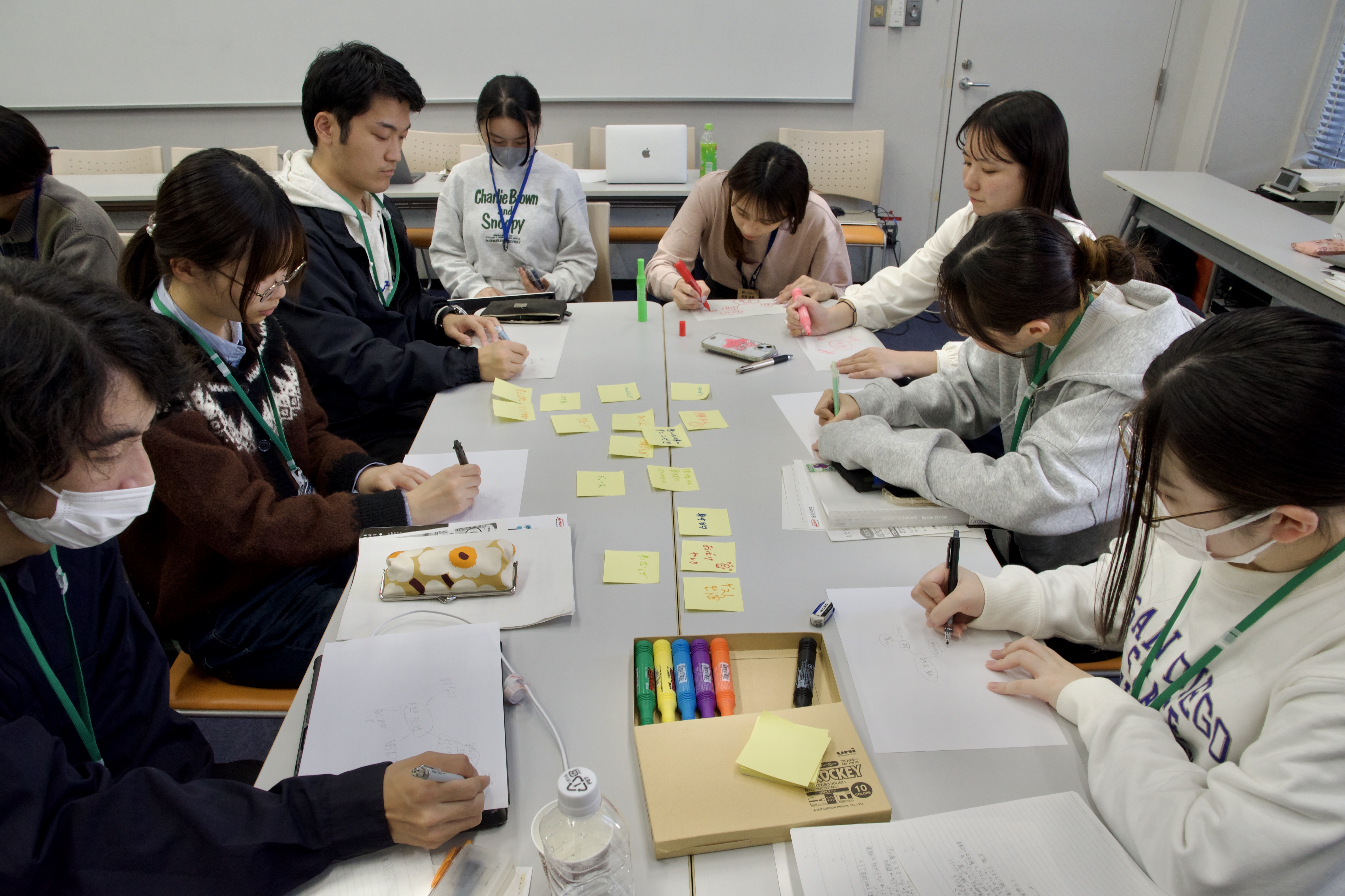 企業訪問で得た知見をもとに、既成概念にとらわれない自由な発想でアイデアを広げるワークショップを実施。学生ならではの柔軟な視点から、多くのユニークなアイデアが生まれました。