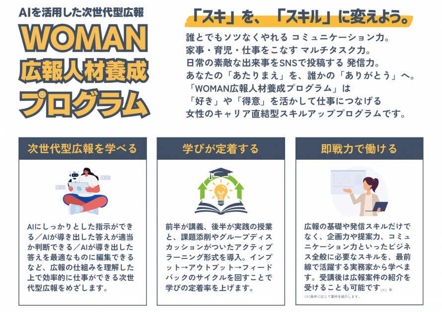 ATOMica、地域企業の広報人材不足を「AIの力」で解消へ。実践型「WOMAN広報人材養成プログラム」を始動